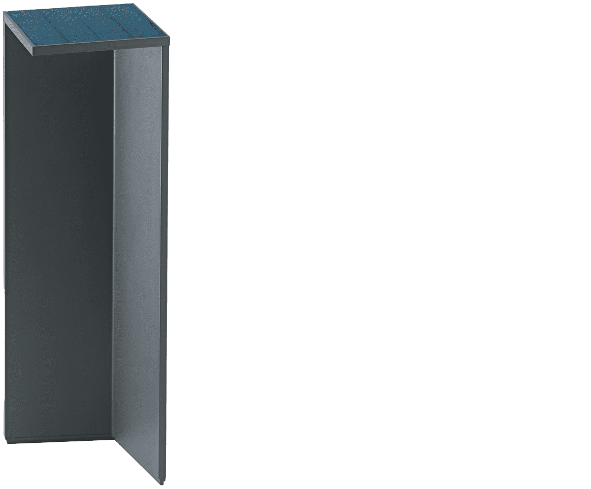 Whether used as pathway lighting or atmospheric terrace light, the Nusolar outdoor light operates completely autonomously. A high-quality solar panel and intelligent sensors provide subtle light at night, which brightens up when approached. During the day, the Nusolar automatically turns off and recharges itself for its next use from daylight.