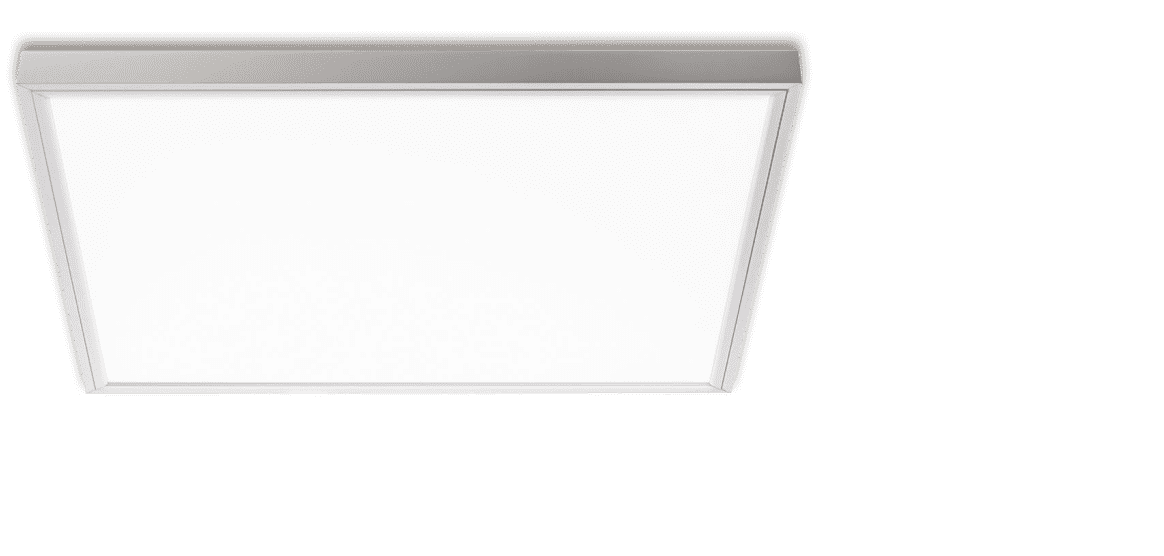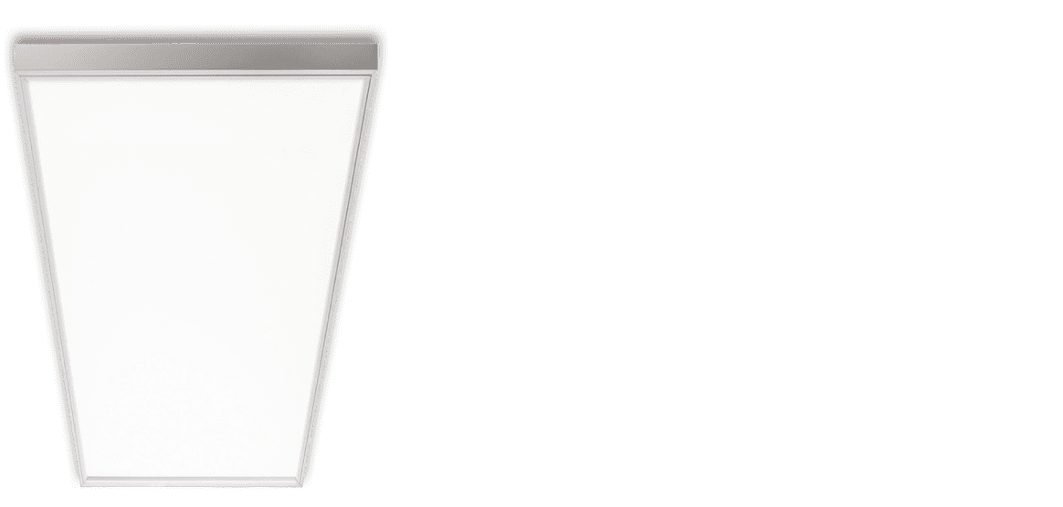 28 mm Aufbauhöhe und dem im Rahmen integrierten Treiber entspricht es der Optik eines Einlegepanels.